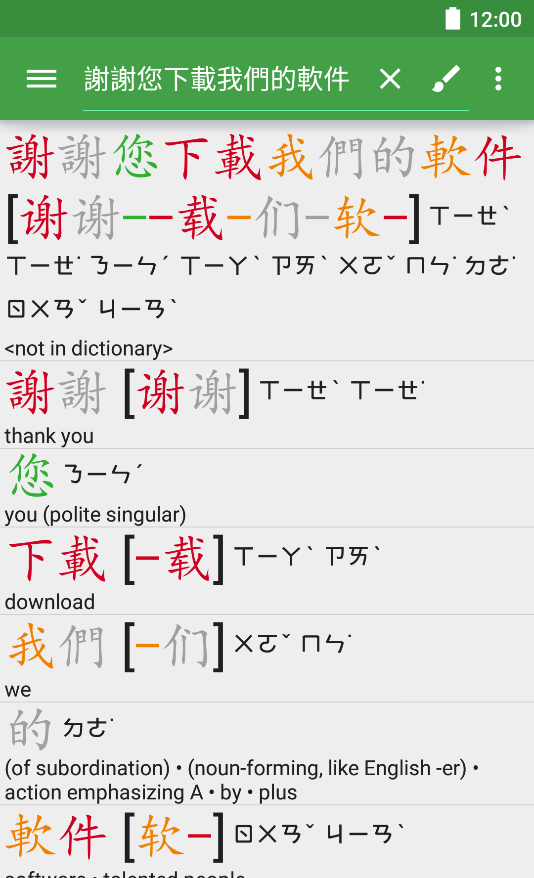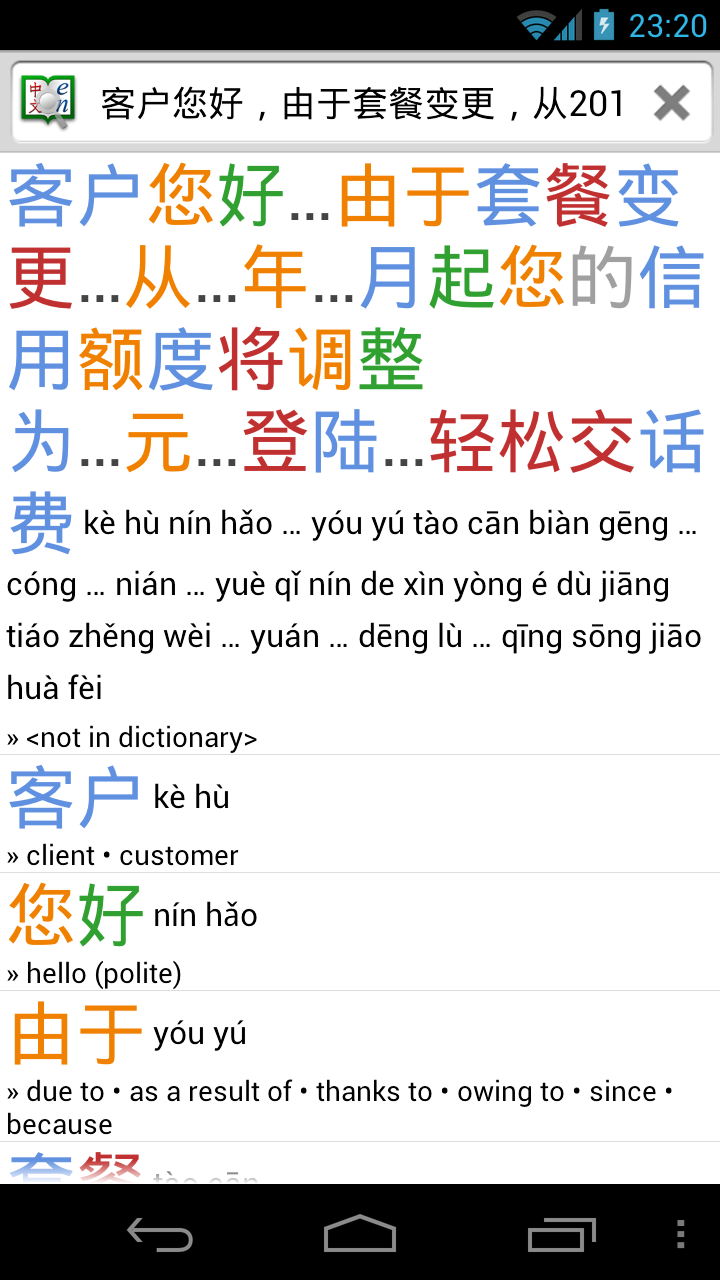 - Improved sentence decomposition - for example, try pasting a Chinese SMS into the search box