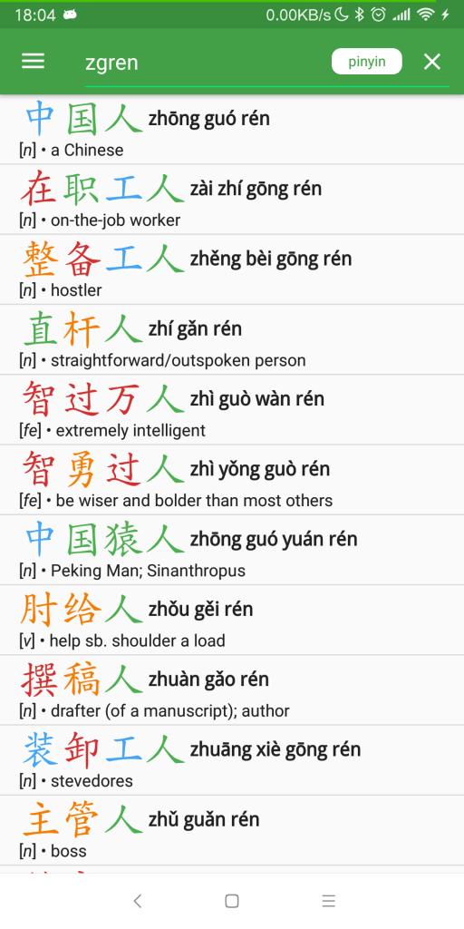 - Added support for pinyin/jyutping abbreviation search. Now you can type “wsm” or “wshm” instead of “weishenme” for faster lookups! One good strategy is to just enter the first character of each syllable (e.g. “zgr” for “zhongguoren”) and, if there are too many matches, then finish the final syllable in full (e.g. “zgren” for “zhongguoren”)