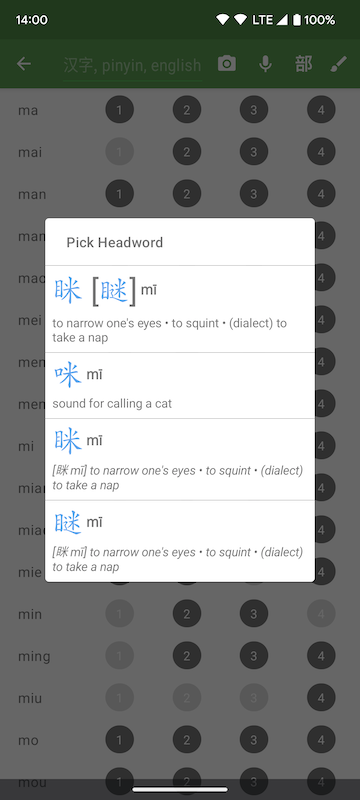 In general, this change brings a more consistent and predictable behavior to tapping on a headword character: i.e. tap to bring up animated character.