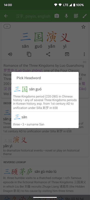 This update comes with a couple of behavioral changes when tapping on characters in a multi-character headword: