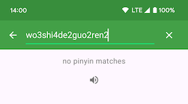 - Add voice playback button for non-matching toned phonetic searches (e.g. “wo3shi4de2guo2ren2”, see screenshot below). For correct voice playback, please use tones where tone sandhi has already been applied