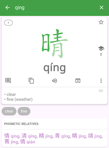 - Added Phonetic Relatives when viewing single character headwords
